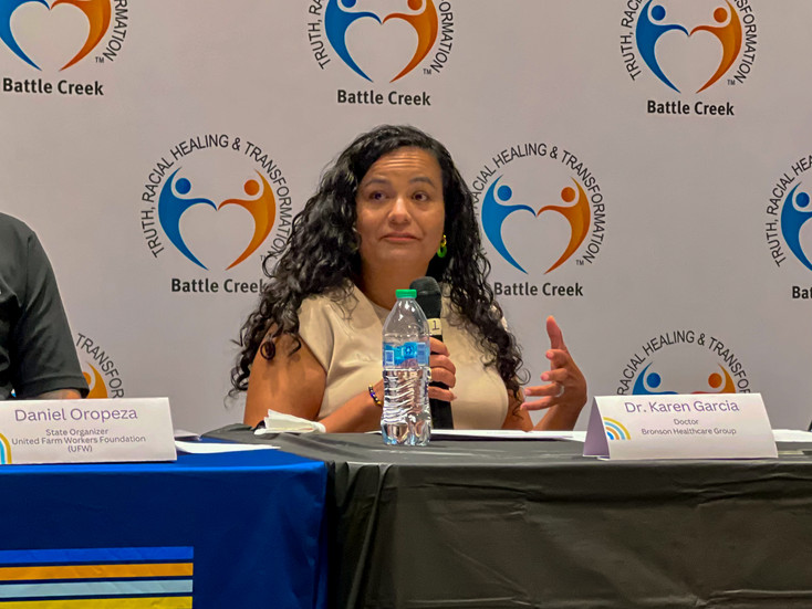 The panel consisted of Battle Creek Police Chief Shannon Bagley; Lisa Gardner, coordinator for multilingual learners at Battle Creek Public Schools; Christina Khim, executive director of the nonprofit Burma Center; Dr. Karen Garcia, pediatrician and executive fellow at Bronson Healthcare; Daniel Oropeza, Michigan organizer for the United Farm Workers Foundation; and Elizabeth Santana, managing attorney at the Michigan Immigrant Rights Center.